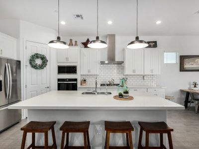 Immaculate 3-bedroom, 2.5-bath residence showcasing modern elegance and designer touches throughout. The primary suite offers a spa-inspired retreat with a sleek upgraded shower, dual vanities, and an expansive walk-in closet. The open-concept kitchen and living area feature stunning quartz countertops, a large dining room, and seamless flow for entertaining. Two versatile flex rooms at the entry can serve as a private office, media lounge, or be enclosed for a custom space. Outdoors, the backyard awaits your vision—an ideal canvas for a pool, outdoor kitchen, or resort-style escape. Just 2 years new and move-in ready, this home blends luxury, comfort, and endless possibilities.